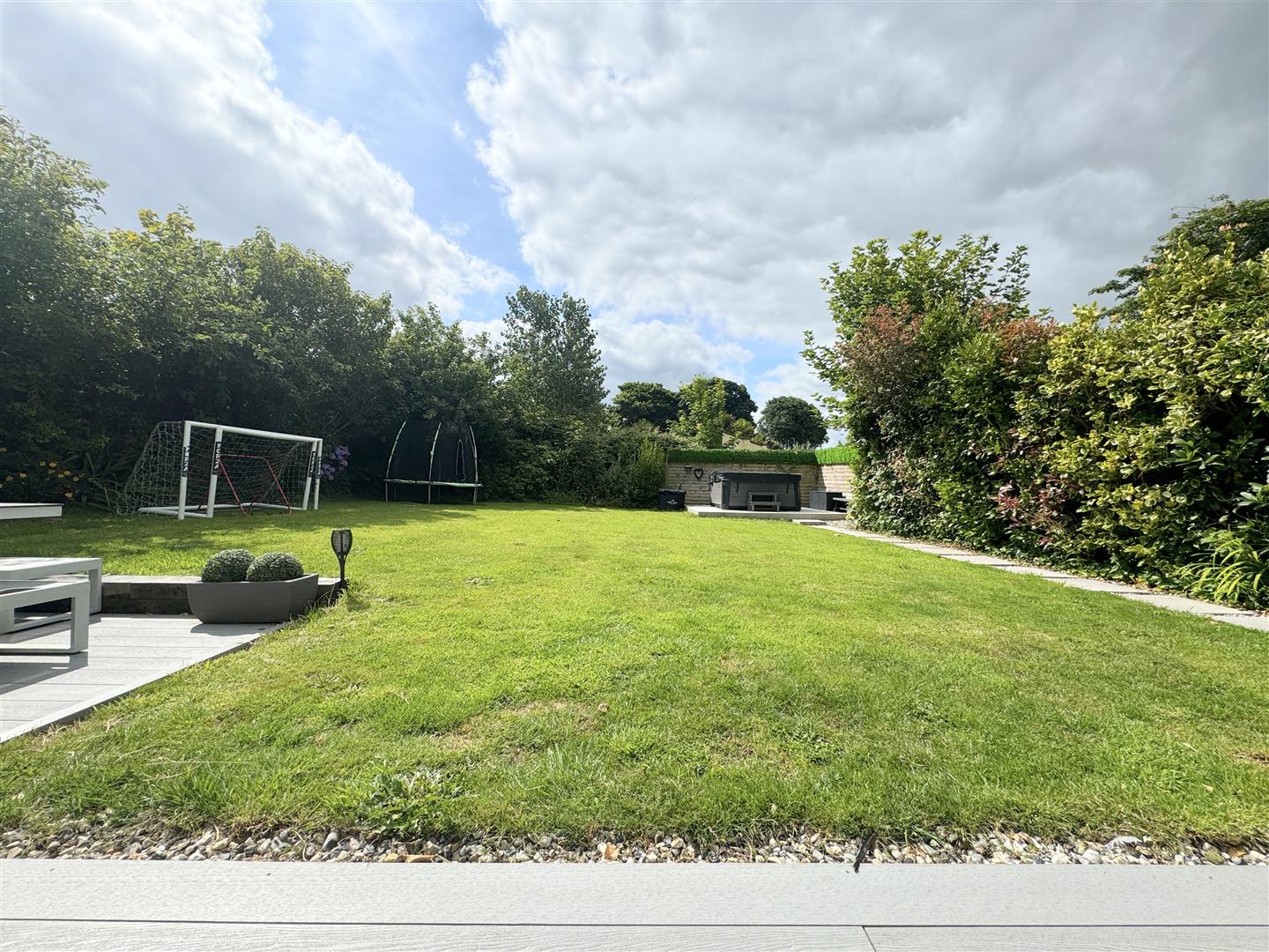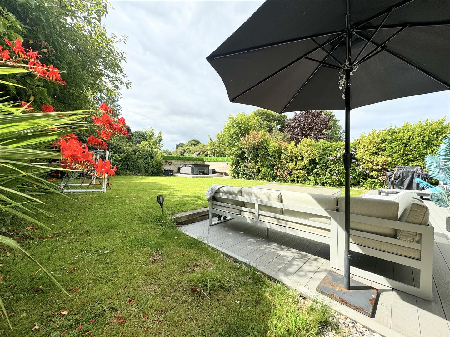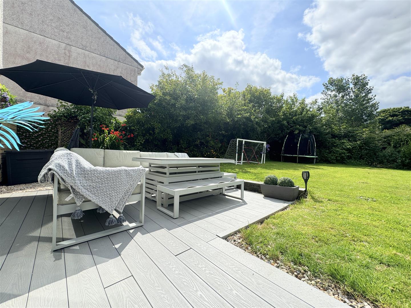 Externally, the southerly facing, predominantly level rear garden is a peaceful and private space. It includes a lawned area large enough for children to play, a patio ideal for family barbecues, and a variety of well-established plants and shrubs. There is also a brand-new garden store to one side, and the hot tub—powered by an air source heat pump—is available by separate negotiation. To the front, there is access down both sides to the rear garden, ample driveway parking, and a one-and-a-half-size garage with an electric door.