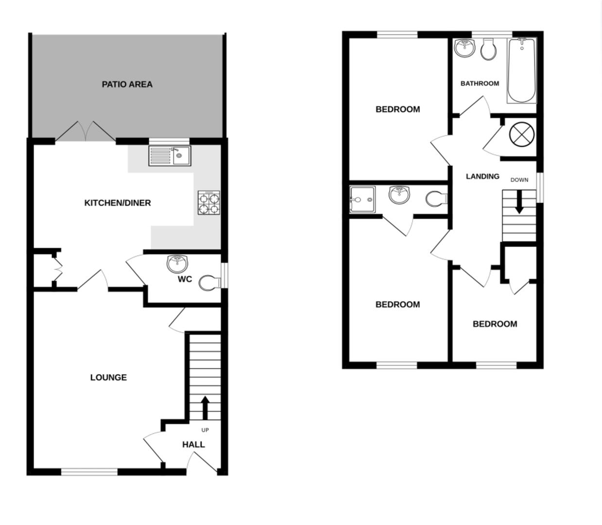 Upstairs, the property offers three well-proportioned bedrooms—two generous doubles, one with an ensuite shower room and a single—ideal for families or those needing a home study. The bathroom is located off the landing and includes a bath with an electric shower over. A useful airing cupboard houses the water tank and there's also a useful additional storage cupboard.