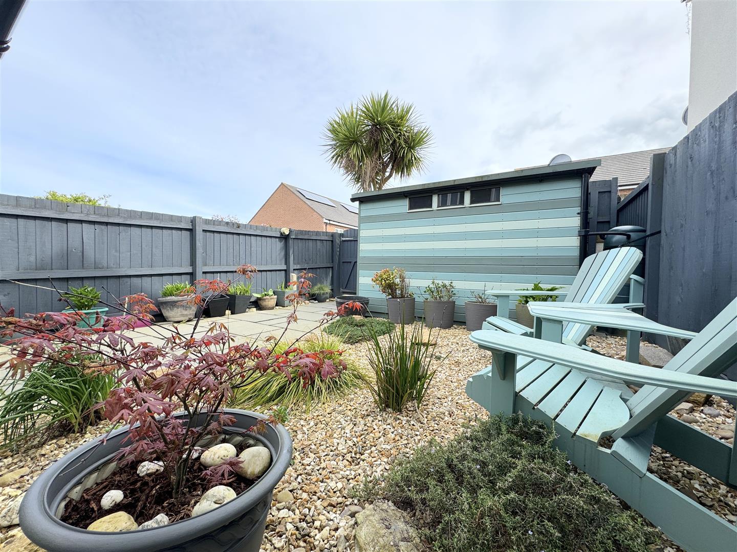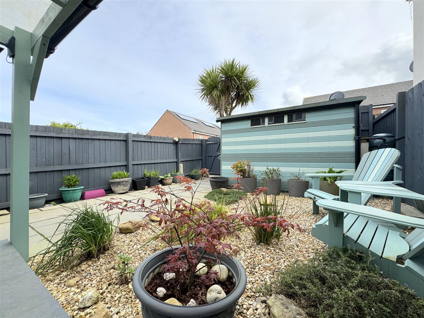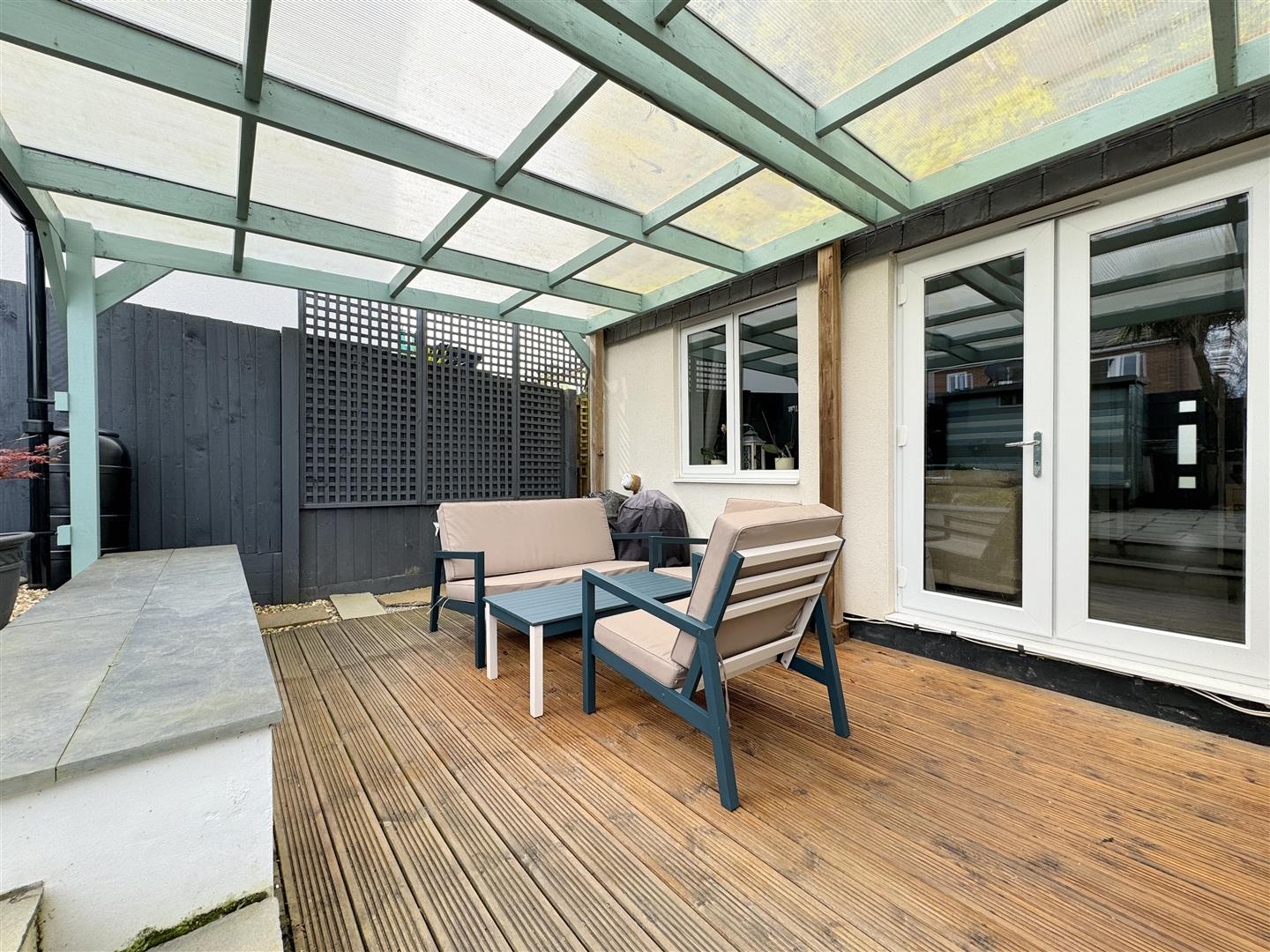 Externally, the garden at the rear is low maintenance and easterly facing with an area to the side big enough for a shed. It is particularly private and enclosed with an under cover seating area, ideal for those days where you need a little shelter! There is also access to the rear where you will find the allocated parking space.