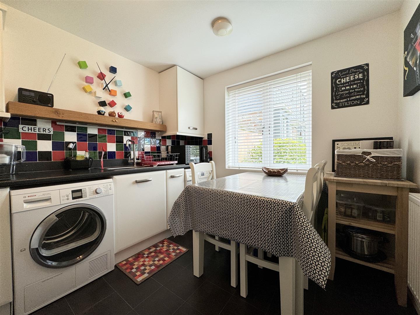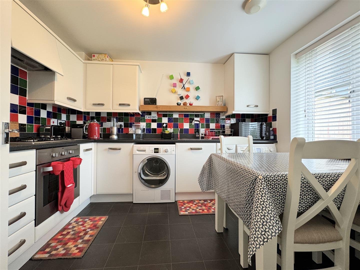 A tiled entrance hallway with a cloakroom guides you into the kitchen which is at the front of the property. The kitchen has a generous range of modern white units with an integrated electric oven and gas hob with space for a dish washer, washing machine and fridge freezer. The current owners have a small table within the kitchen ideal for a quick cup of coffee or breakfast on the run.