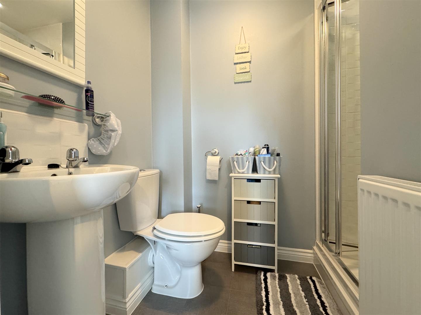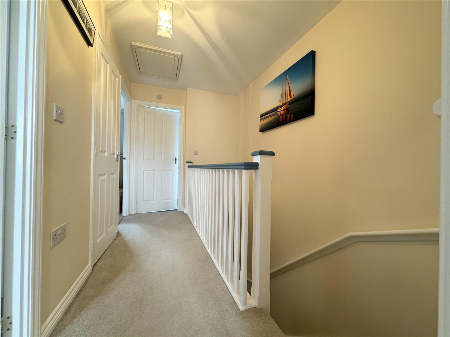 All three bedrooms can be found on the first floor where there are two doubles and a single. The main bedroom features mirrored built in wardrobes and an ensuite shower room with a family bathroom serving the other two. Both bathrooms are presented to an immaculate standard with attractive tiling. Off from the landing area, there is an airing cupboard and access to the loft which has been partly boarded and has a loft ladder.