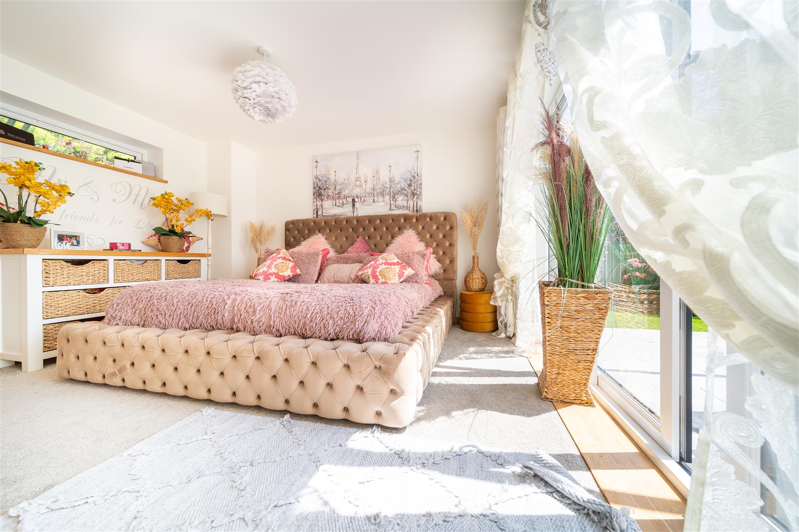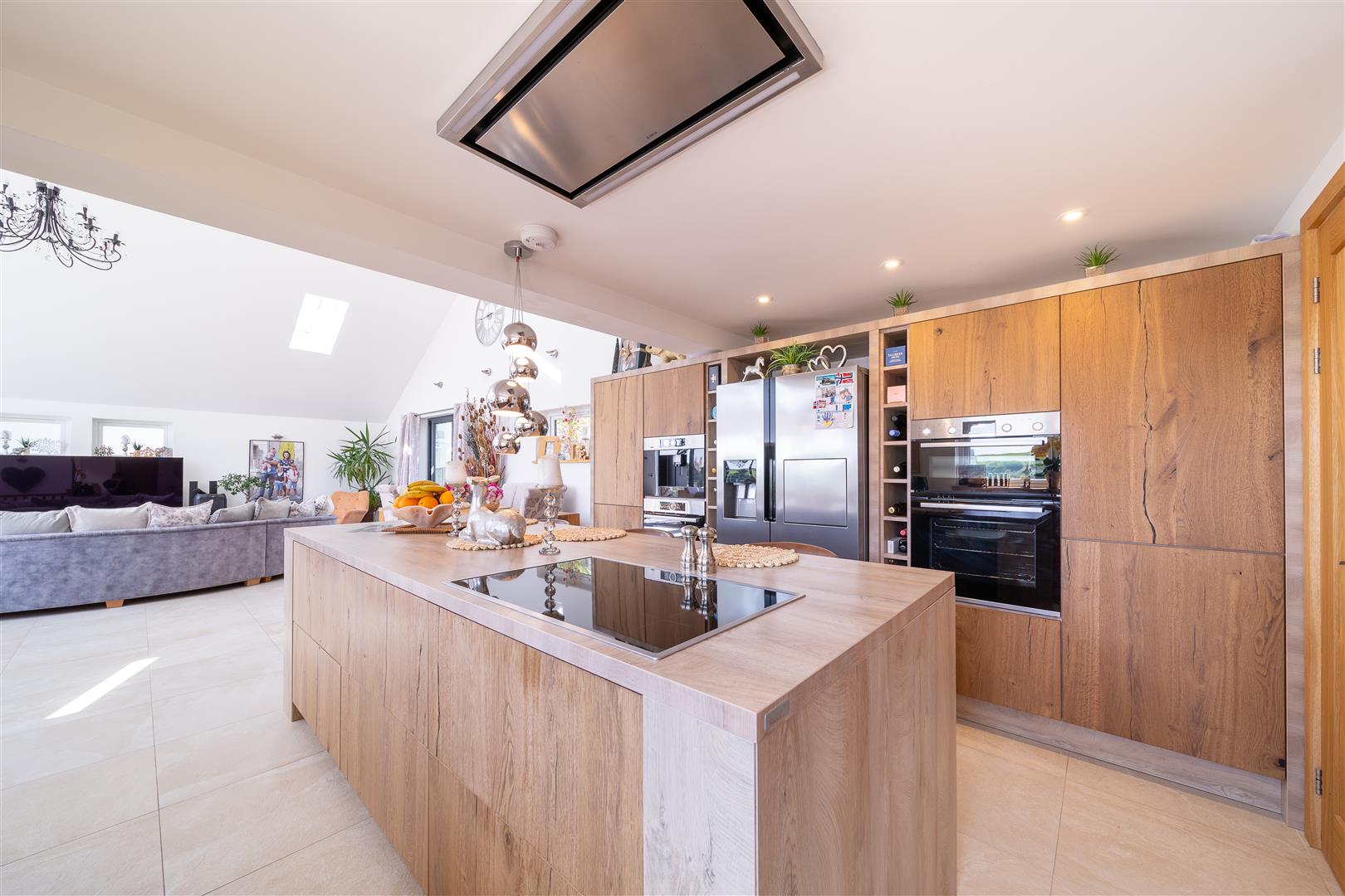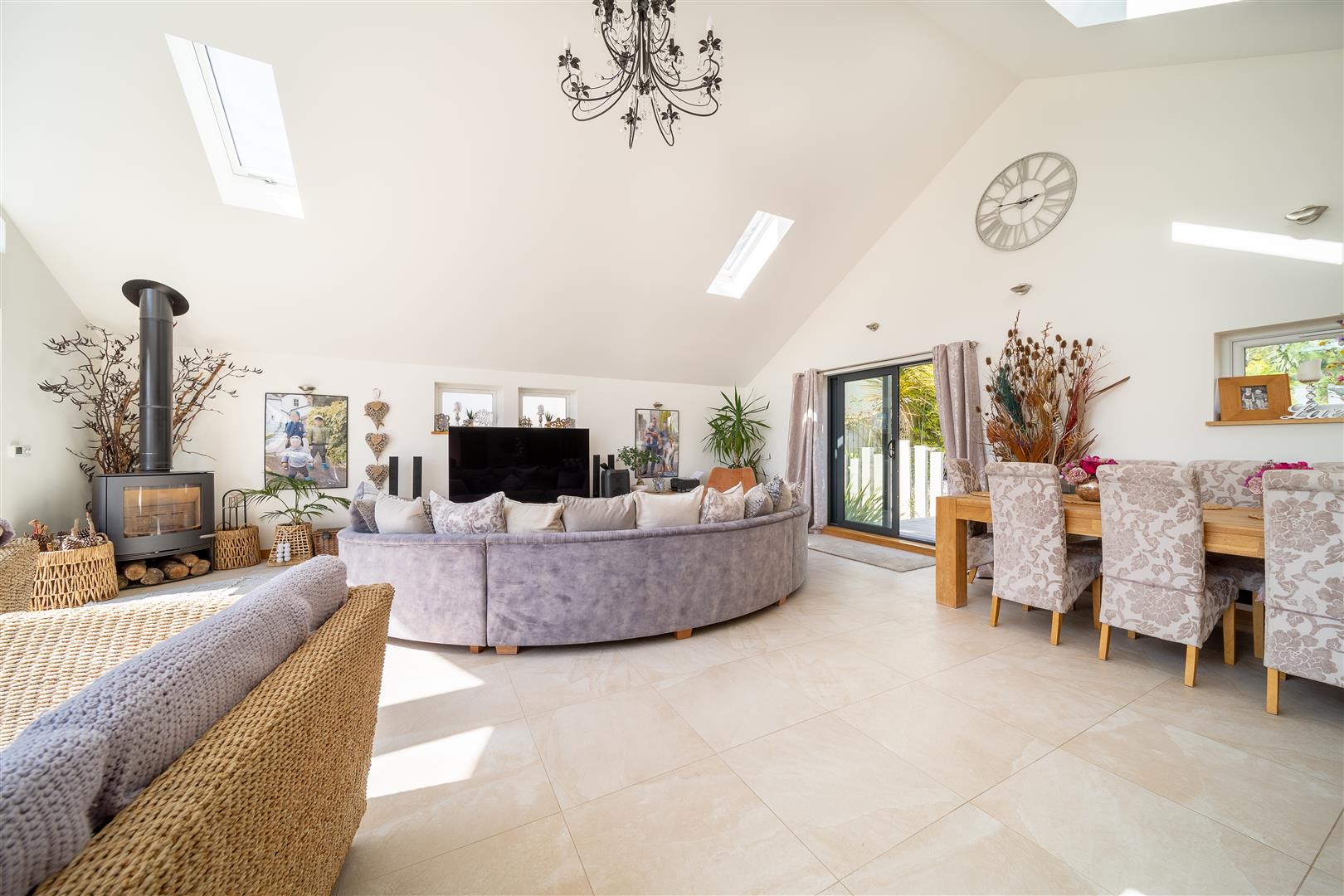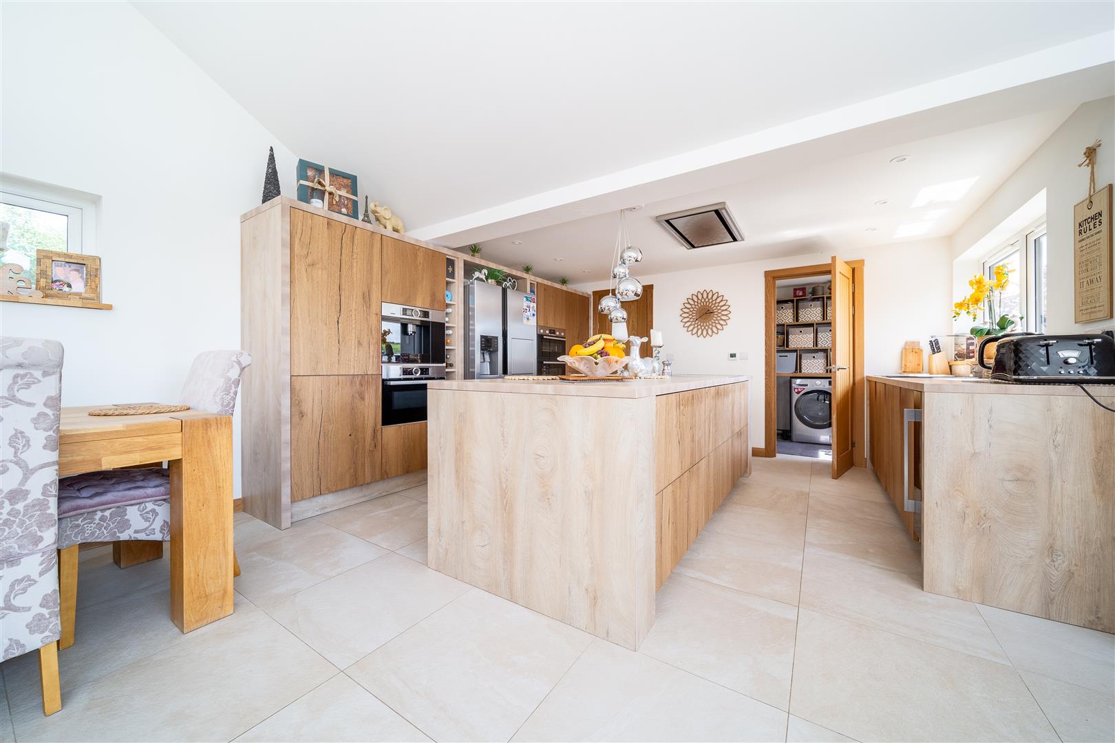 The family kitchen really does offer the very best of contemporary design and functionality with top of he range Bosch integrated appliances including a coffee machine, double oven, microwave and wine cooler. There's ample space for relaxing and dining with friends and family with direct access to the rear garden... you are likely to spend a lot of time in this area as there’s enough space on offer to dine alfresco or enjoy your morning espresso/evening wine as the sun rises and sets in the distance.