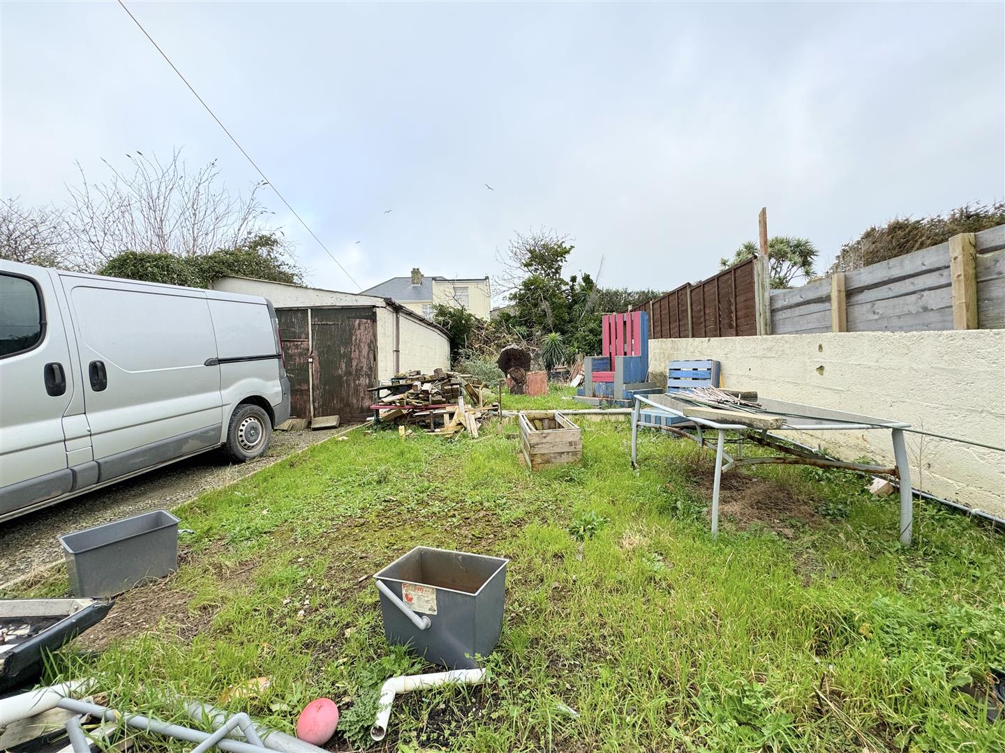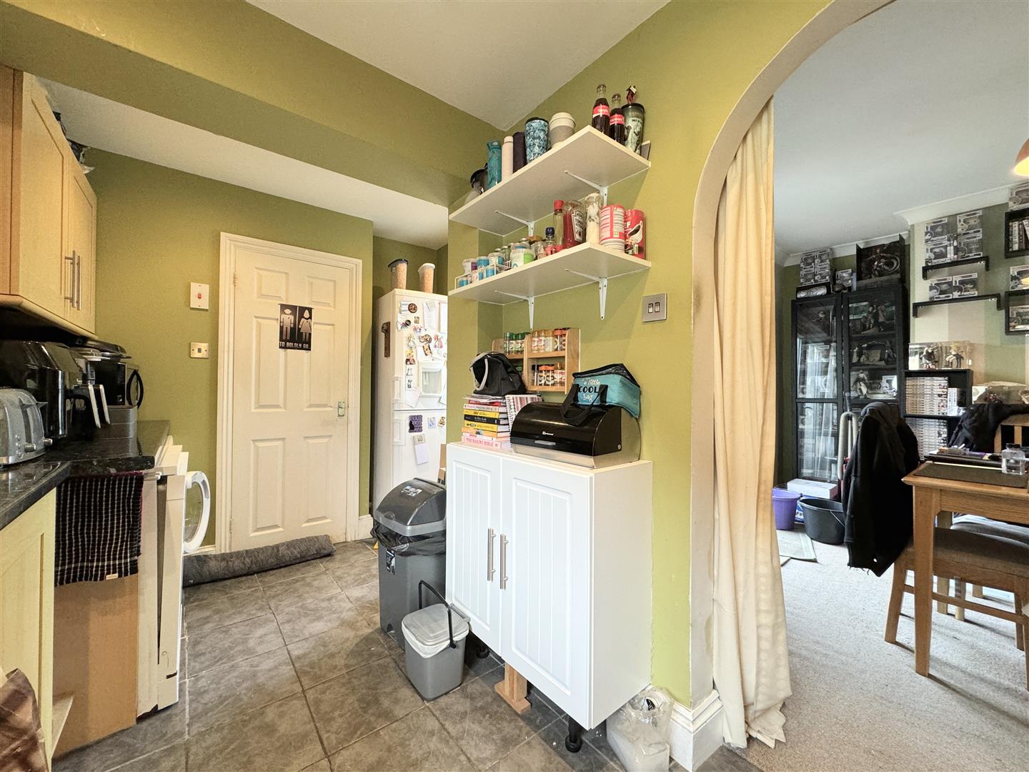 At the rear, the kitchen which provides access to the garden offers a basic range of cupboards with space and plumbing for the necessary white goods. At the rear of the kitchen, you will find a ground floor shower room.