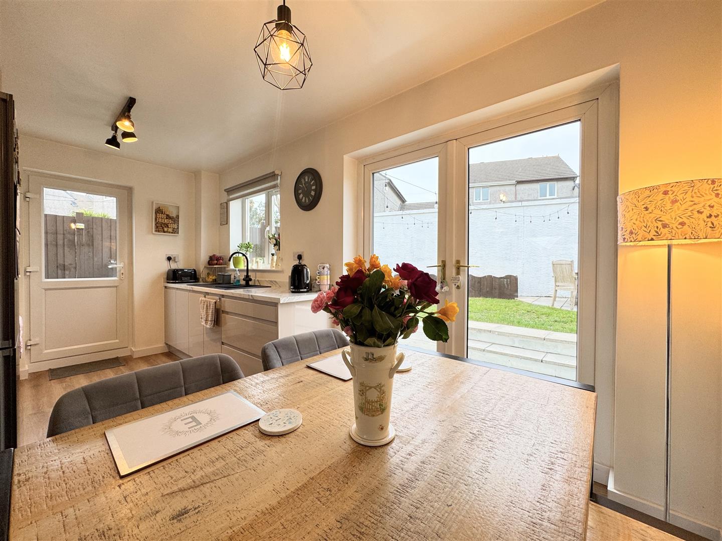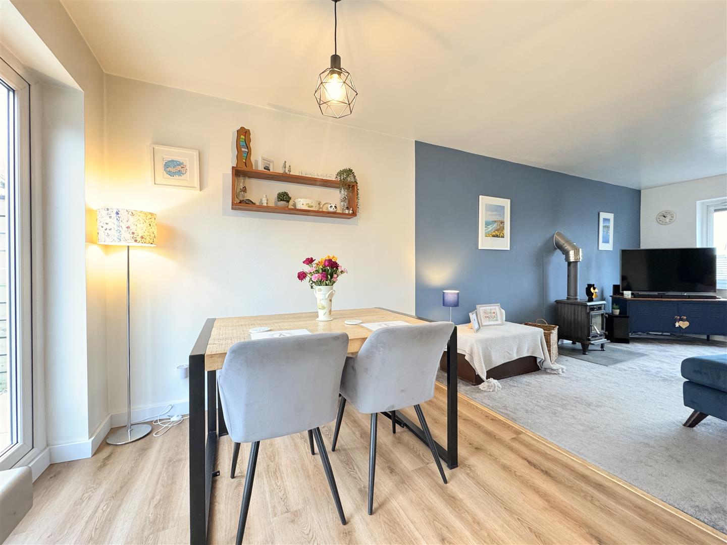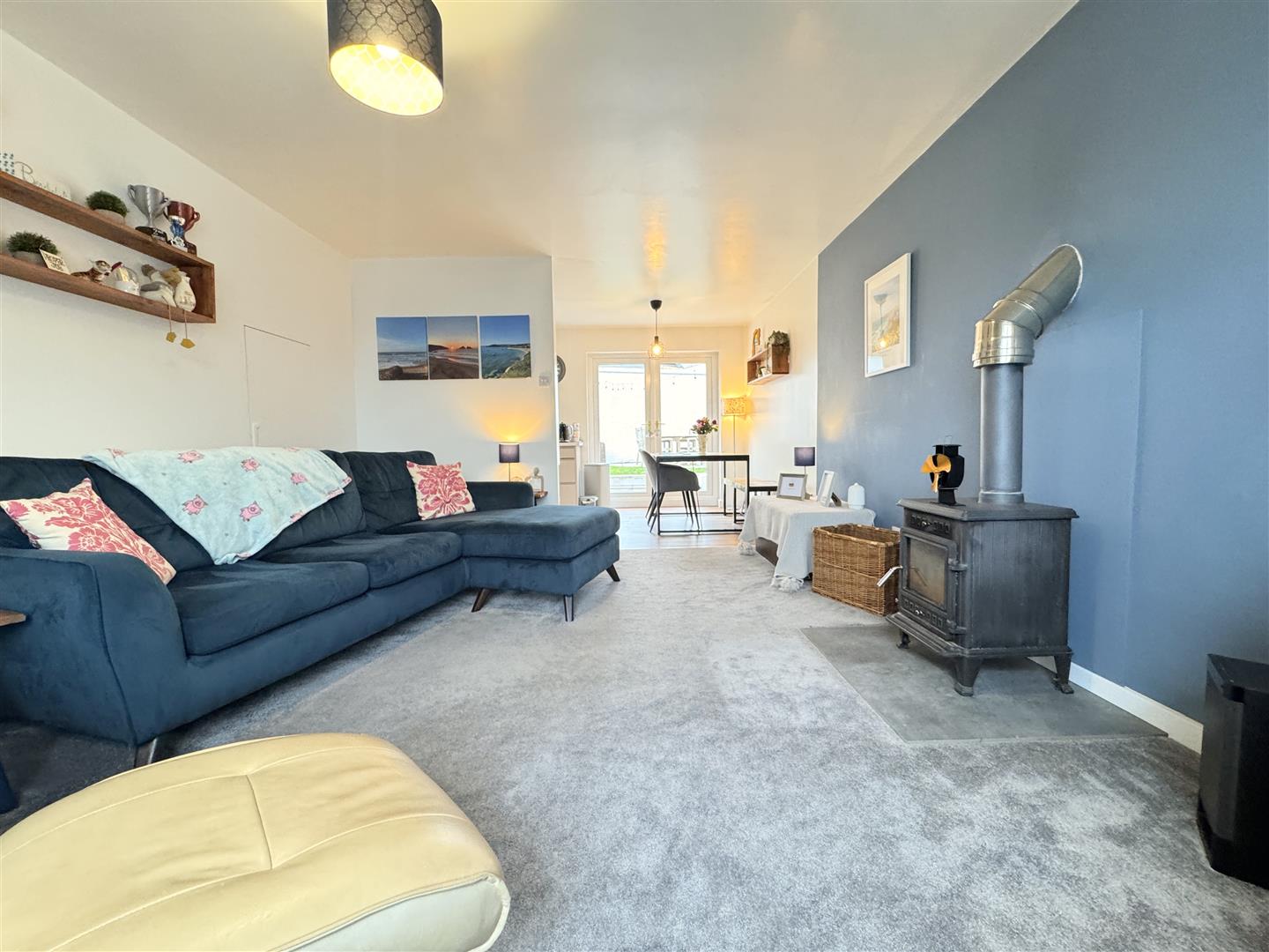 A neat and welcoming entrance porch with attractive practical tiling ideal for the storage of shoes and coats guides you into the living room which has a window to the front and stairs to the first floor...a generous space with a log burner, storage cupbaord and plenty of space for relaxing at the end of the day. The lounge blends seamlessly into the kitchen diner which was replaced a few years ago, a contemporary, bright space with a door to the side and rear. Practically the kitchen offers an array of gloss units with an integrated electric oven and hob with space for a fridge freezer. There's plenty of space for a dining table and a real sense of connection between these areas whilst still having ample room for cooking, dining and relaxing.