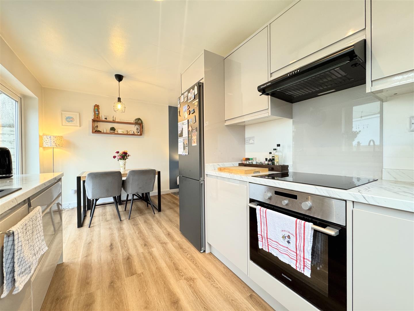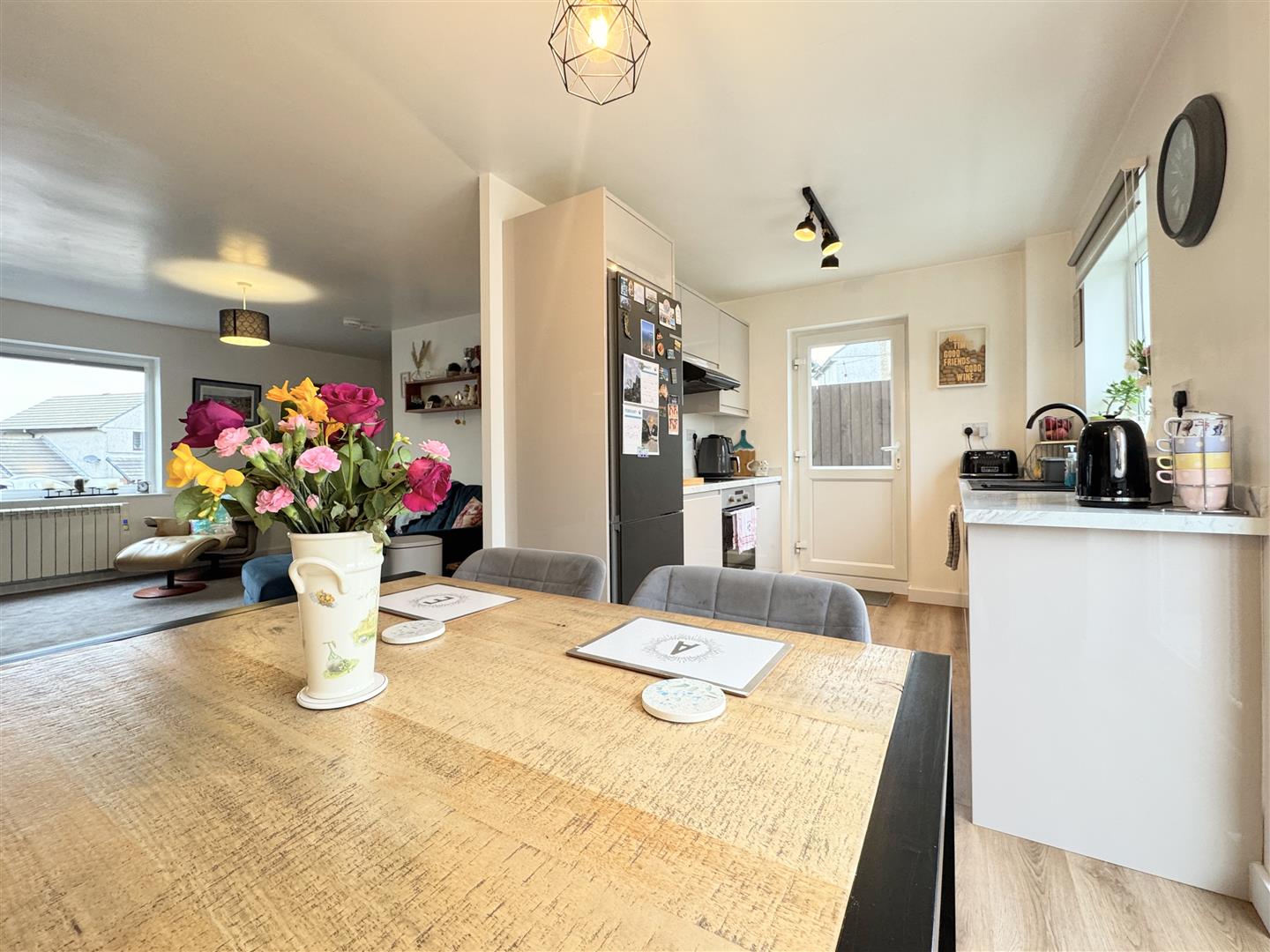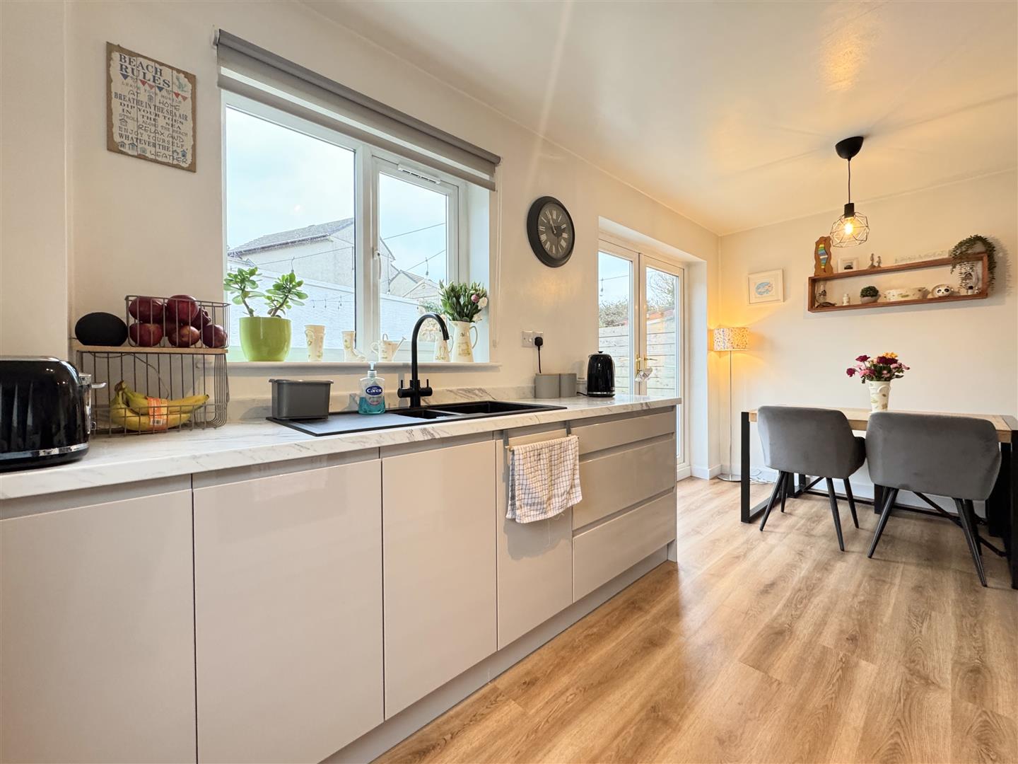 A neat and welcoming entrance porch with attractive practical tiling ideal for the storage of shoes and coats guides you into the living room which has a window to the front and stairs to the first floor...a generous space with a log burner, storage cupbaord and plenty of space for relaxing at the end of the day. The lounge blends seamlessly into the kitchen diner which was replaced a few years ago, a contemporary, bright space with a door to the side and rear. Practically the kitchen offers an array of gloss units with an integrated electric oven and hob with space for a fridge freezer. There's plenty of space for a dining table and a real sense of connection between these areas whilst still having ample room for cooking, dining and relaxing.