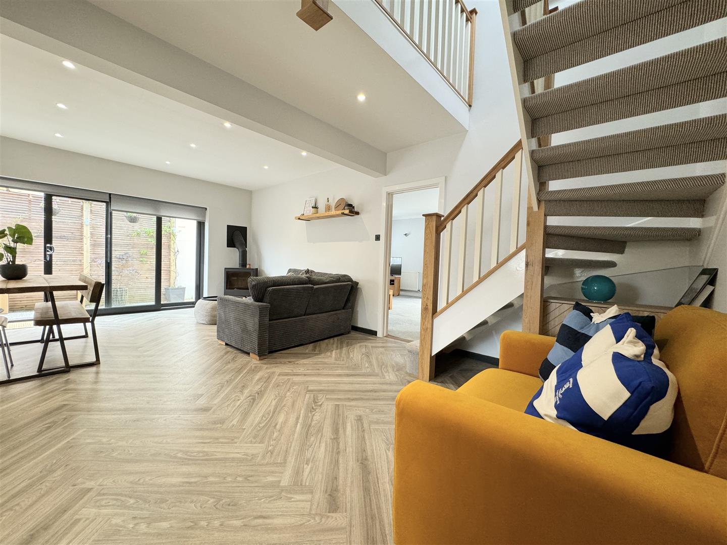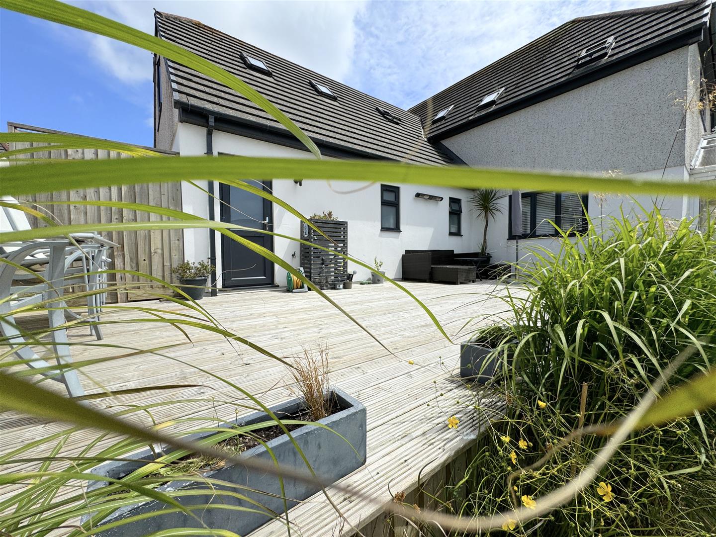 Externally, at the front there's ample parking with access down both sides to the rear. To one side, you will find a pretty courtyard style garden and at the rear, the garden has a generous lawned area and a large area of decking, perfect for family BBQs and gatherings with some pretty planted borders.