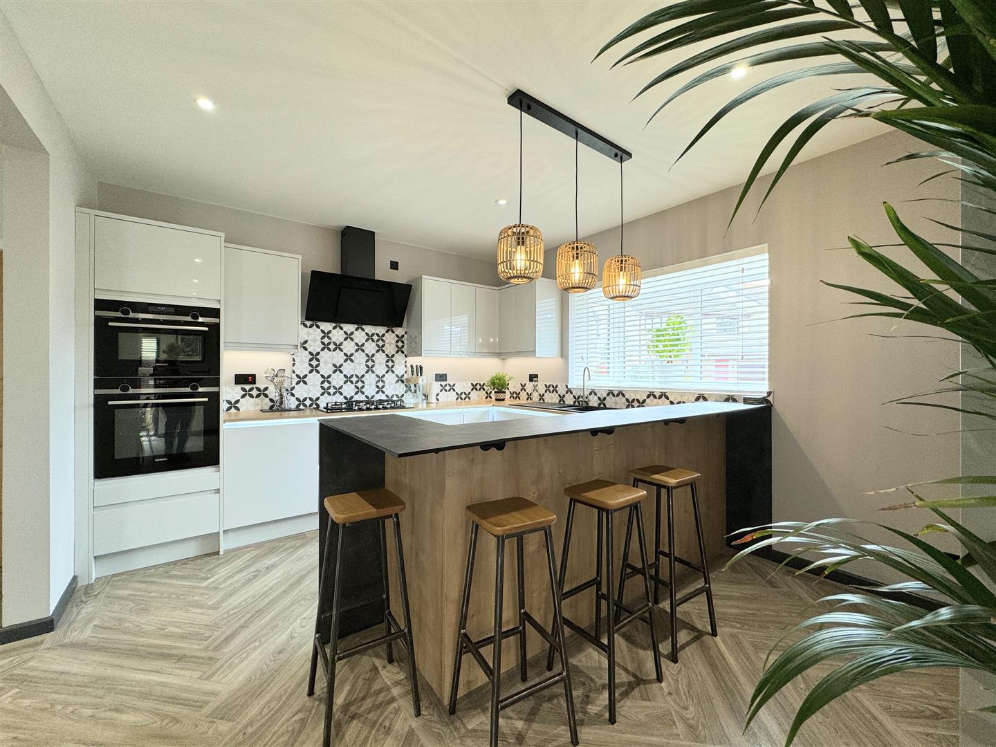This property, one of the largest designs at Kingsley Meade has been lovingly cared for and completely transformed, reconfigured and modernised by the current owners who have created the ultimate family home over the years. Upgrades and improvements include a kitchen replacement, new windows, creating an open plan kitchen/diner/snug, redecorating throughout, replacing the carpets and flooring and adding a log burner.