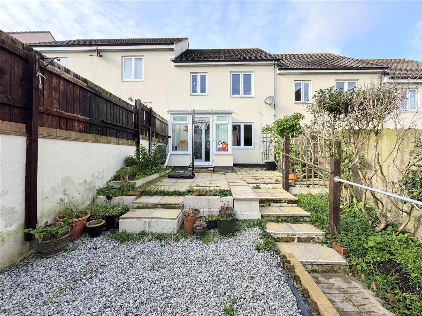 Outside, the rear garden is low maintenance, fully laid with patio slabs and complemented by attractive raised beds—perfect for outdoor entertaining. Beyond the garden, there is allocated parking for one car.