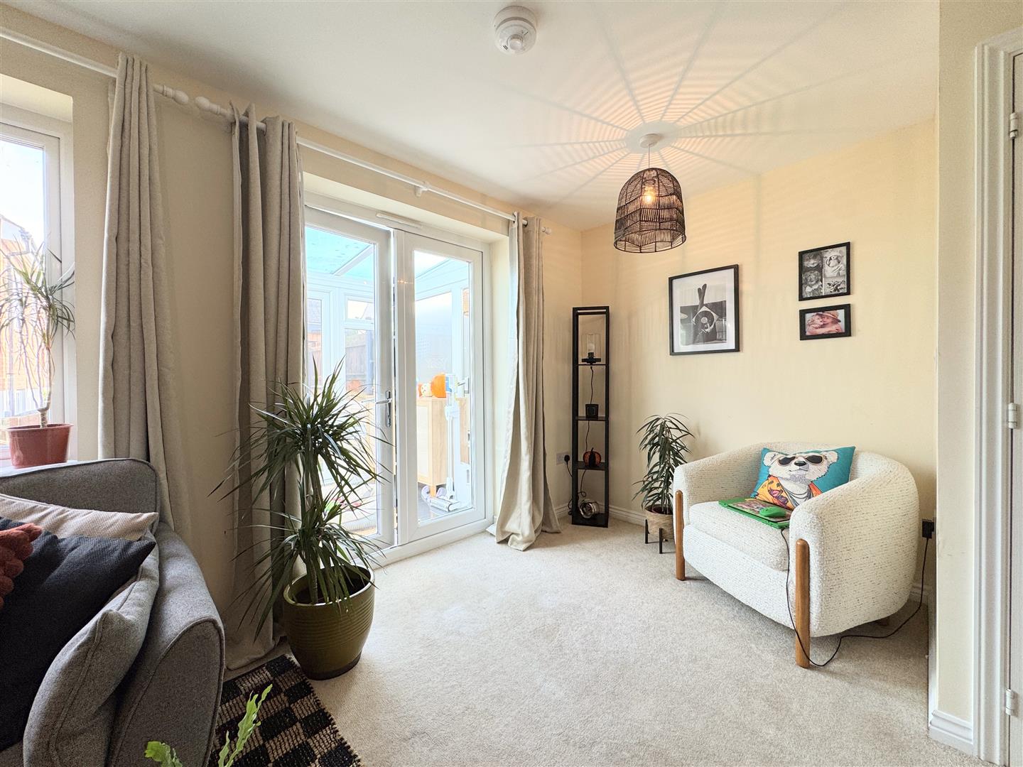 To the rear of the property, the lounge is a great size and tastefully decorated with neutral tones and high-quality laminate flooring.  From the lounge, double doors lead into a sun room that which adds a versatile extra reception room and provides direct access to the rear garden.