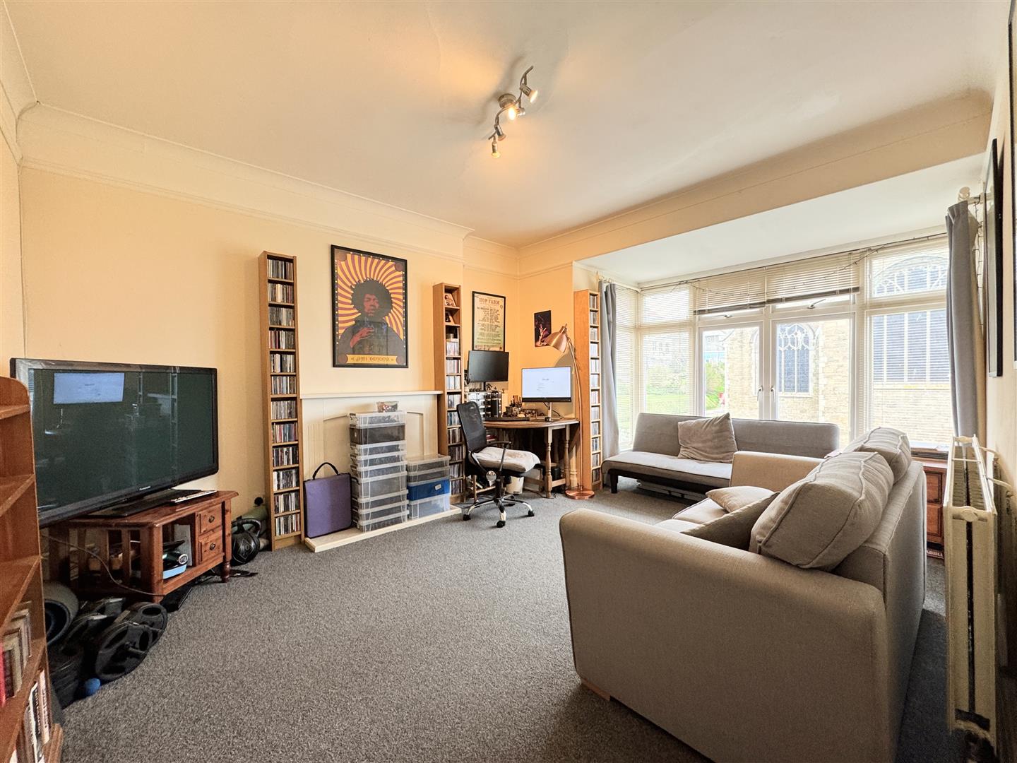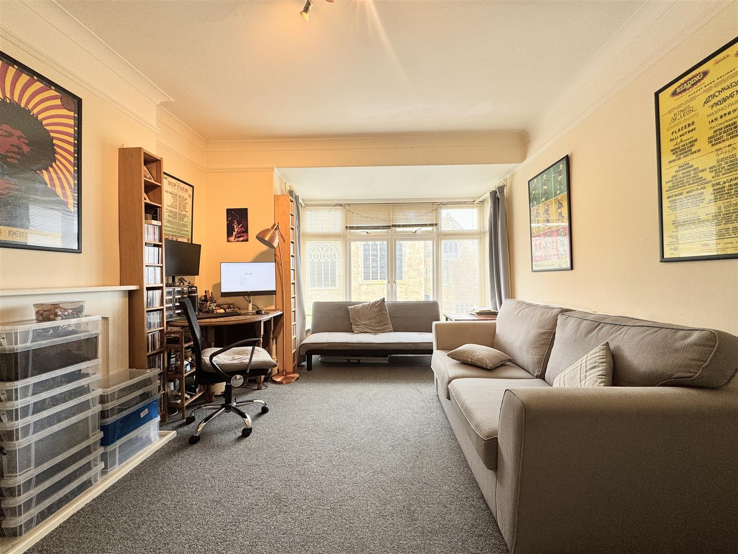 The property offers two bedrooms: a generously sized double and a well-proportioned single. Both rooms are well presented with plenty of natural light. The spacious, light-filled lounge provides ample room for both relaxing and entertaining, enhanced by a box bay window with a westerly aspect, offering direct views over the church opposite.
