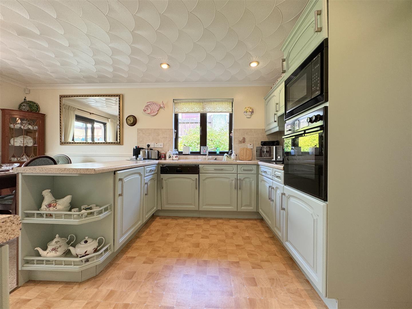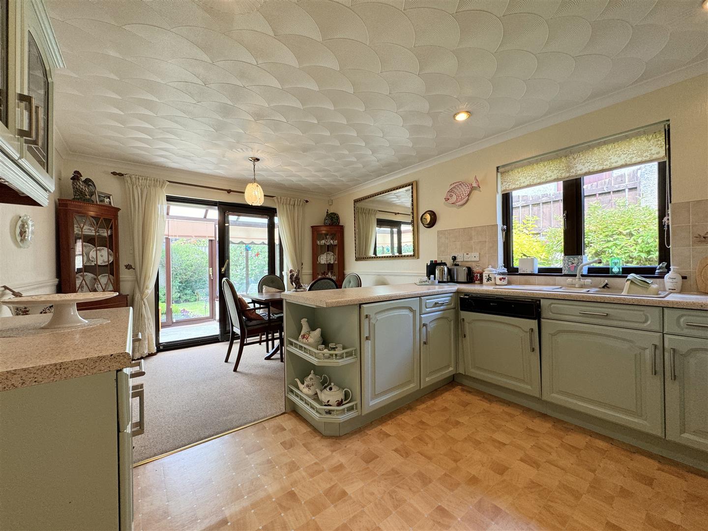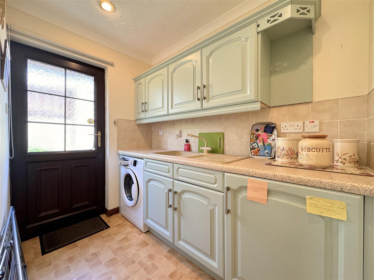 A generous L-shaped entrance hallway with two storage cupboards, one housing the water tank guides you into the living room which has a bay window to the front, a good size room with a cosy feel and an electric fire. The kitchen diner on the other side offers a generous amount of attractive duck egg blue cupboards with an integrated fridge, dish washer, oven and microwave. There's ample space for cooking, dining and relaxing with the conservatory at the rear offering further useful reception space, a lovely area to sit and admire the garden. On the other side of the kitchen, with a door to the rear the utility room offers additional storage and space for a washing machine with an integrated freezer.