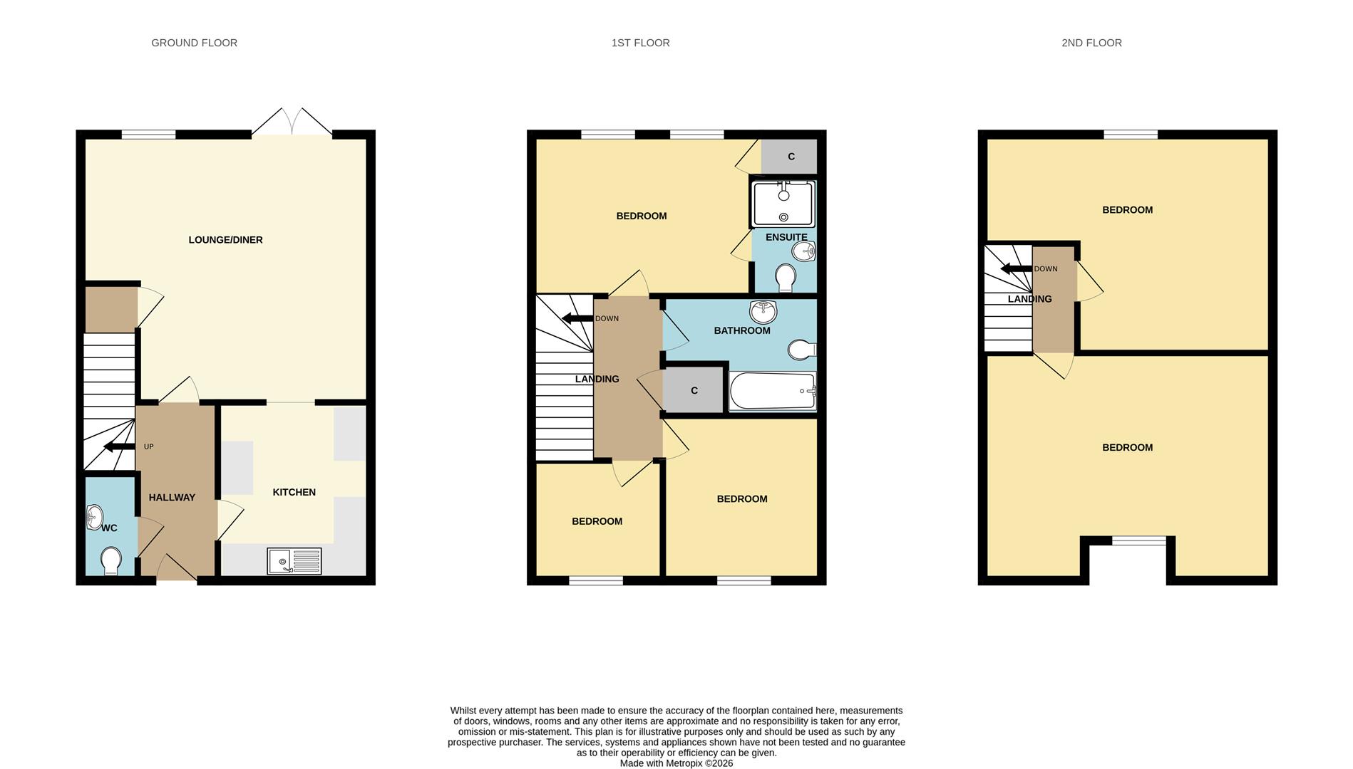 Three of the bedrooms can be found on the first floor, The largest has built in storage and an en suite shower room. One of these bedrooms would make an excellent study or dressing room if required. Also, on the first floor, you will find a useful storage cupboard and the family bathroom is fully tiled and has a bath with a shower over. The remaining two bedrooms can be found on the second floor; both would suit children and have plenty of natural lighta and are presented to a brilliant standard.