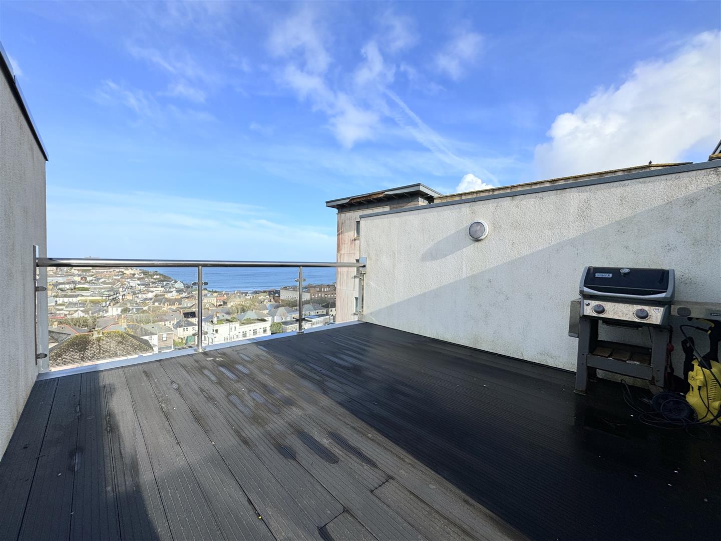 The crown jewel of this home is undoubtedly the third-floor roof terrace. Perched at the summit of one of Newquay’s highest points, it offers completely unobstructed panoramic views—from the town and bay to Fistral Beach, the iconic Headland Hotel, and the sweeping north Cornish coastline. Whether enjoying a quiet sunset or hosting friends, this terrace is a rare vantage point that epitomizes the best of coastal living.