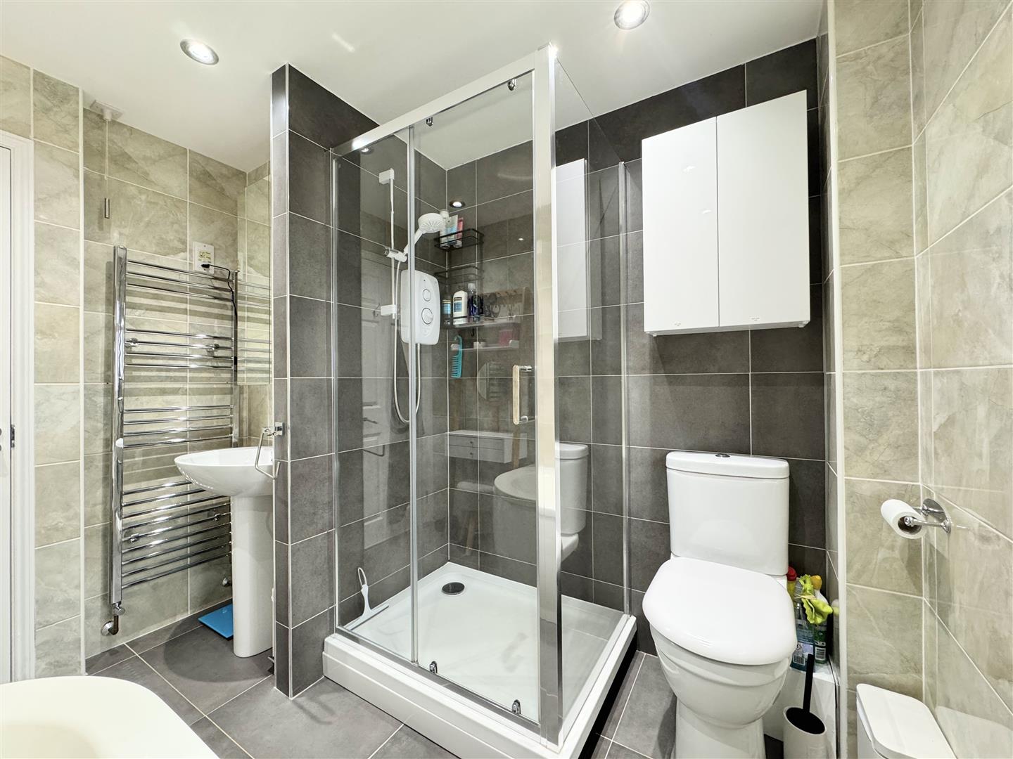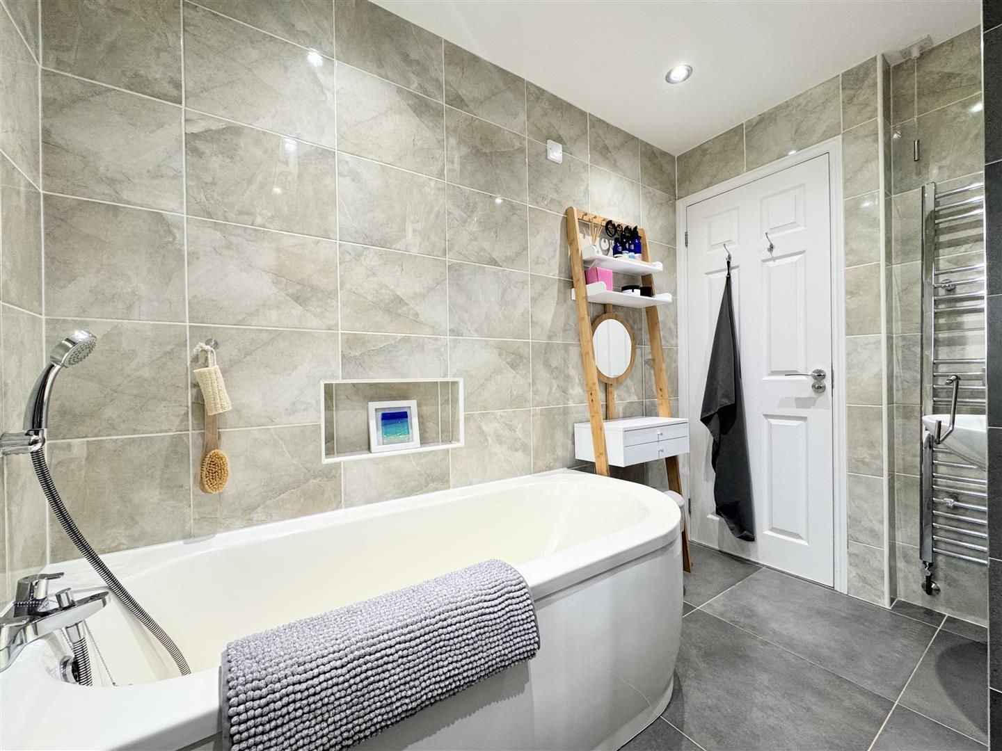 Both double bedrooms are presented to the highest standard, with one at the front and one at the rear. The family bathroom is beautifully tiled, featuring a bath, separate shower cubicle, and a real sense of luxury.