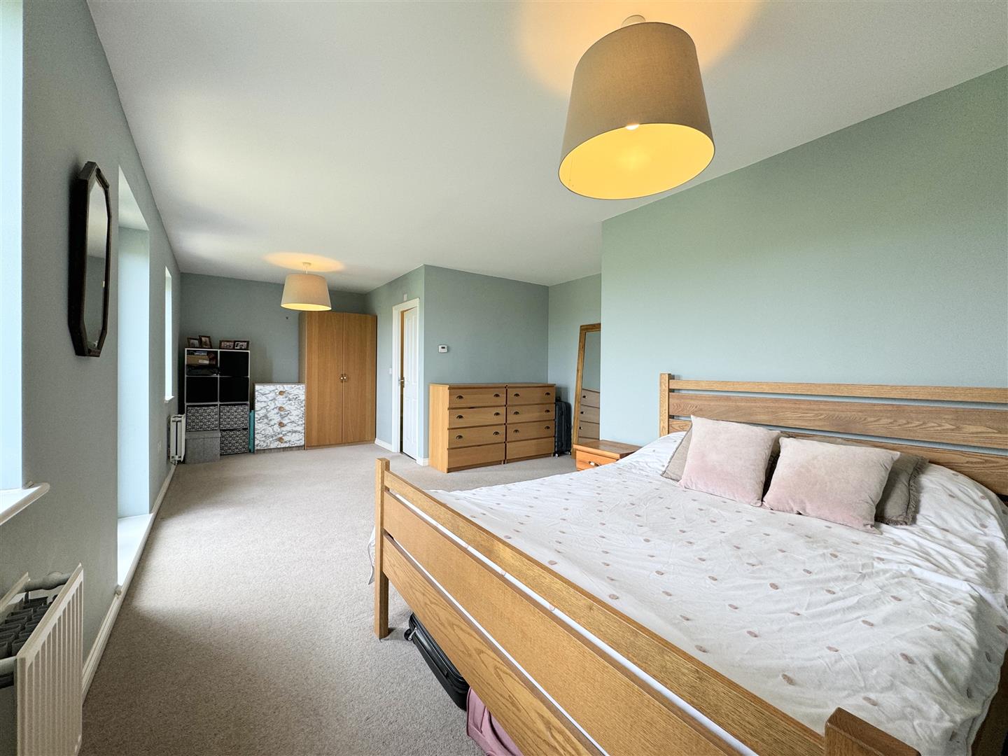 On the first floor, you will find three of the double bedrooms, one with an ensuite shower room and also a family bathroom. The bedroom at the rear enjoys far reaching rural views and one of the front bedrooms is currently utilised as a study. Off from the landing area, you will find a large storage cupboard with the high pressure water tank and an additional cupboard with shelving.