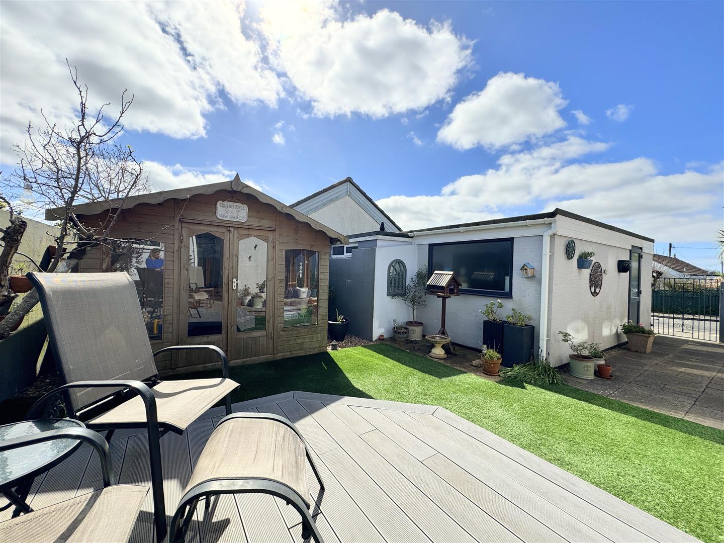 Welcome to 21 Quintrell Gardens, positioned on a generous corner plot with wraparound gardens, this beautifully presented four double bedroom detached dormer bungalow offers a perfect blend of style, space, and practicality. Complete with a detached garage, driveway parking, and owned solar panels, it has been lovingly maintained to provide a comfortable and versatile family home.