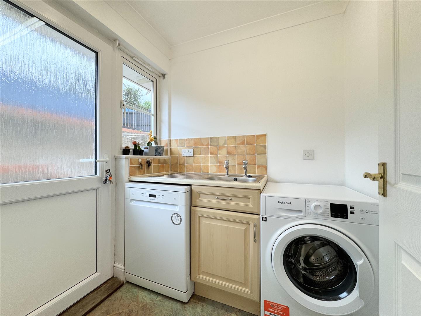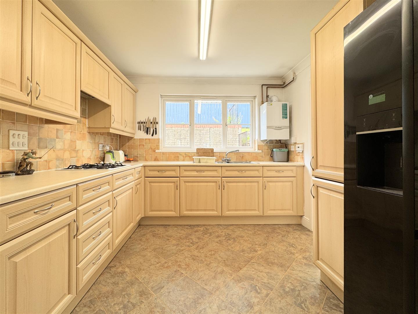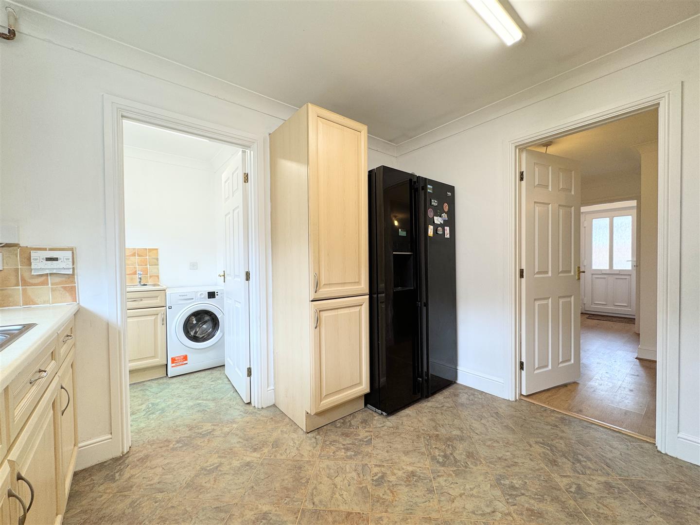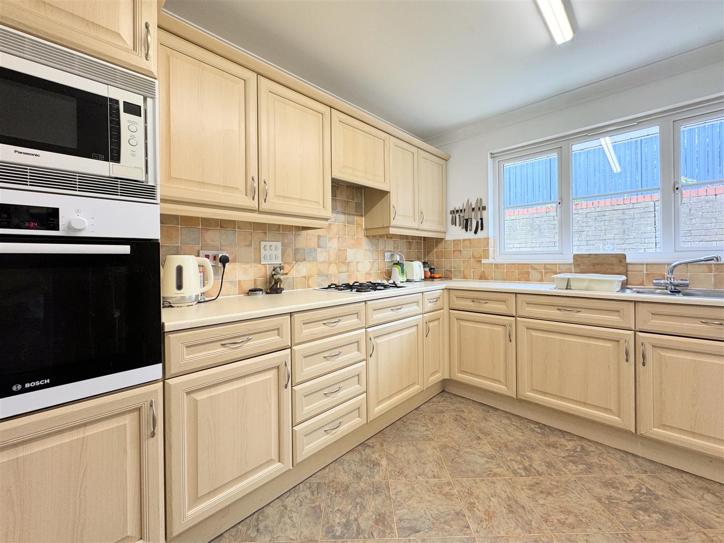 The kitchen offers a good range of light wood effect units with a window to the rear. Practically, there's an integrated oven, gas hob and microwave with space for a fridge freezer. Off from the kitchen, you will find the utility room with a door to the rear. A useful addition with space and plumbing for a washing machine and tumble dryer.
