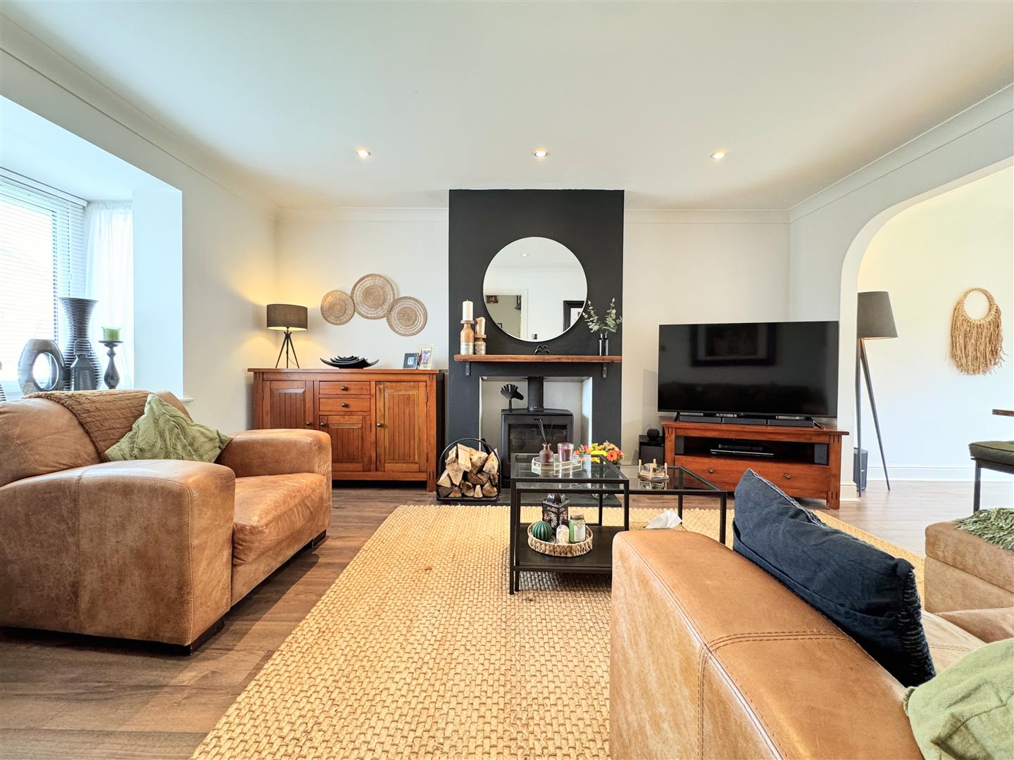 At the heart of the living room, a log burner creates a cosy focal point, perfect for cosy winter evenings, while the open layout ensures effortless interaction whether you’re cooking, dining, or simply unwinding. It’s a space designed for real family life; relaxed, sociable, and beautifully connected.