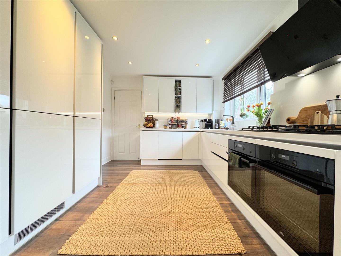 From the moment you step inside, the sense of light and space is undeniable. The welcoming entrance hall sets the tone, leading through to a stunning dual-aspect lounge diner which has a bay window to the front, patio doors to the rear and a seamless flow into the impressive kitchen at the rear. The lounge diner is 26 ft long with plenty of space for the whole family to relax and ample room for a large dining table. The kitchen is sleek, modern, and highly functional featuring a comprehensive range of white gloss units and fully integrated appliances, including a full-height fridge and freezer, twin ovens, and a dishwasher. A separate utility area keeps everyday essentials neatly out of sight and provides plenty of additional storage..