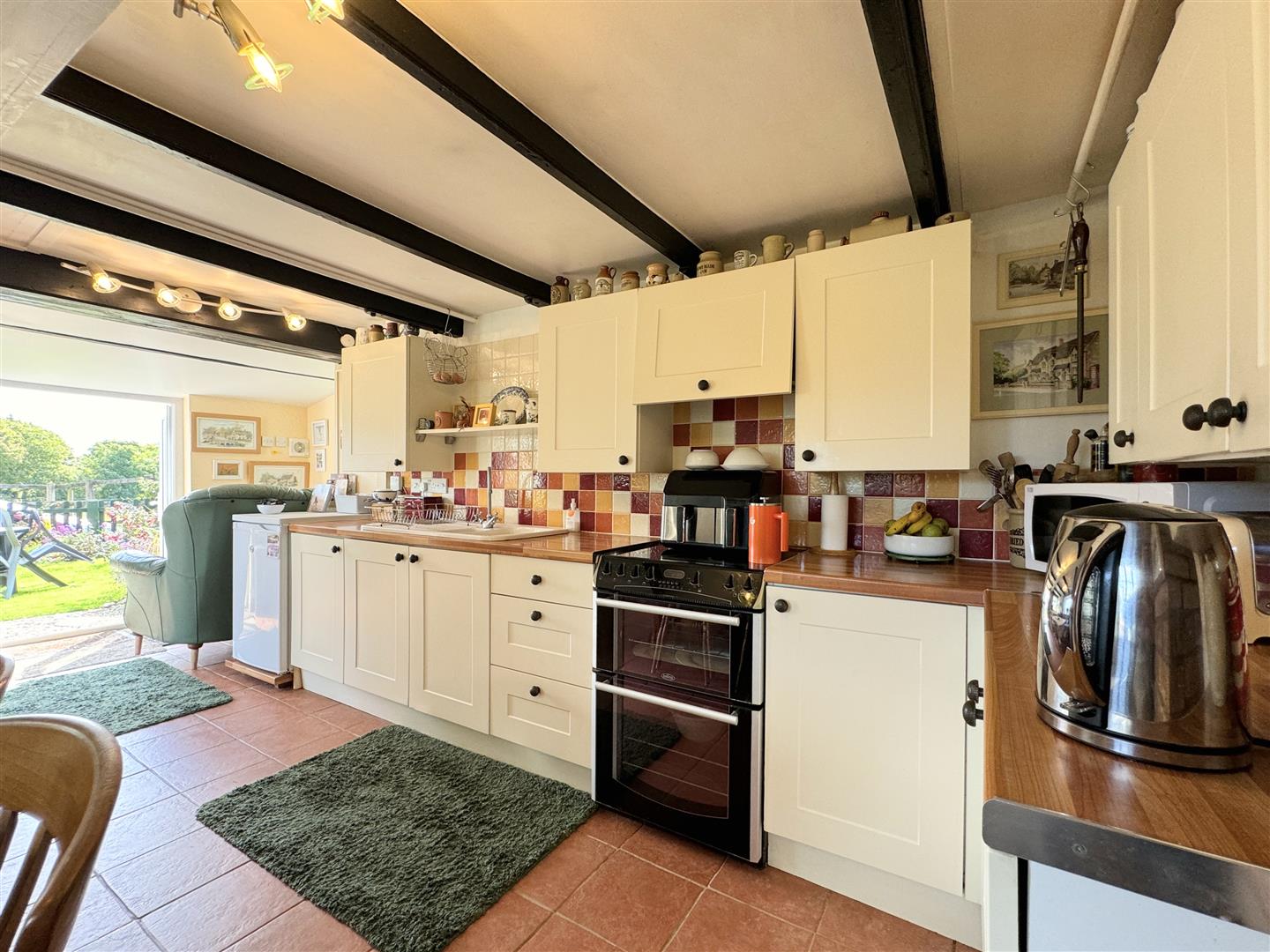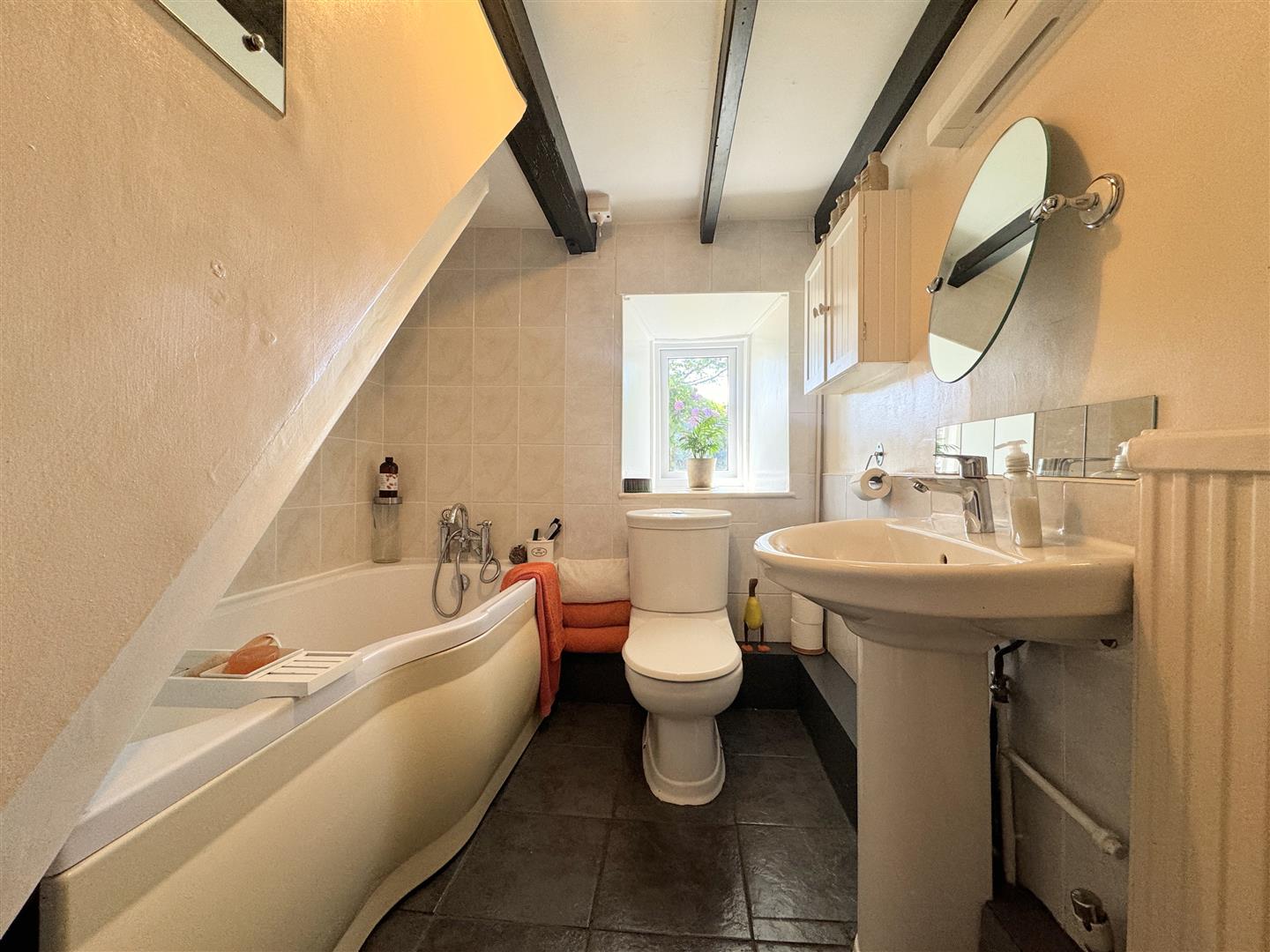 An entrance porch utilised as a utility room guides you into an inner hallway which has stairs to the first floor. On the right, you will find the living room which has a cosy feel with a multi-fuel burner and dual aspect windows. The kitchen, on the other side offers access to the rear garden and has a good range of shaker style units with space for an oven and fridge. There's ample space for a dining table and an abundance of natural light. Part of this room is used by the current owners as a snug area, the perfect spot to enjoy a cup of tea whilst admiring the gorgeous garden. Also, on the ground floor, you will find a bathroom with a shower attachment over.