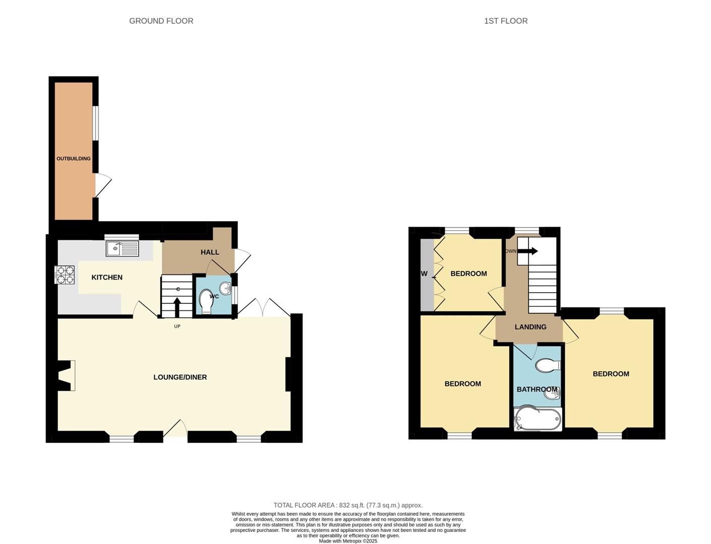 Off the kitchen, a hallway provides access to the garden and is home to a convenient downstairs WC, the gas central heating boiler, and plenty of useful built-in storage.