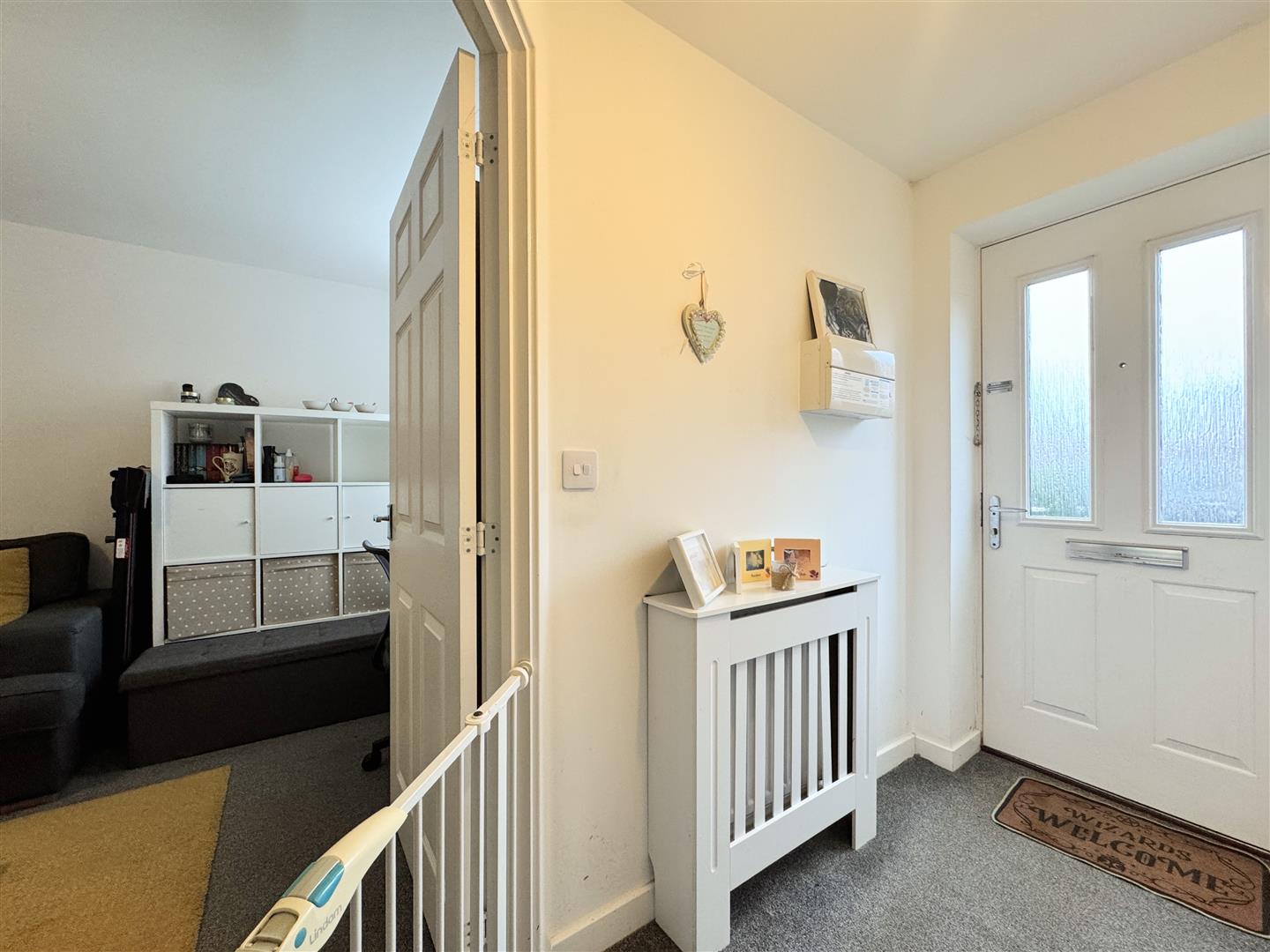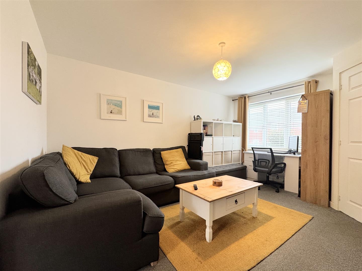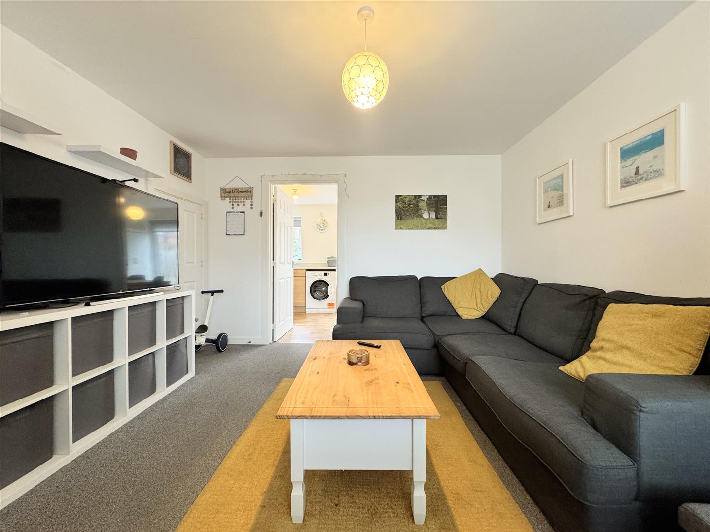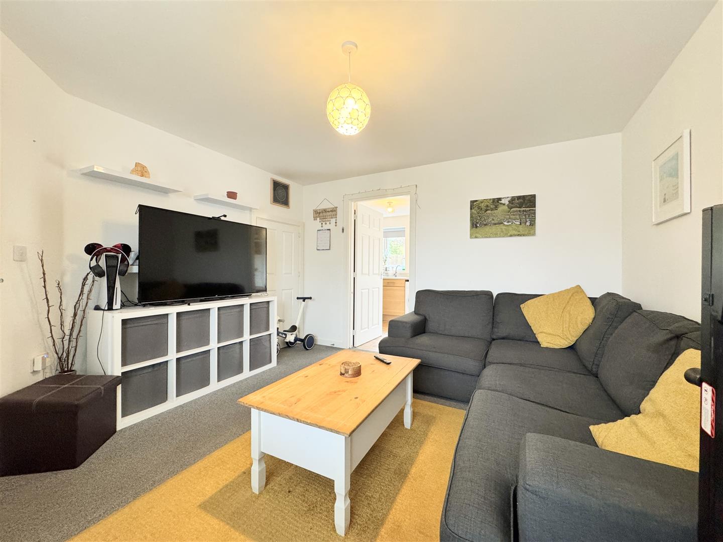 On entering the property, you are welcomed into a bright and inviting hallway with stairs rising to the first floor, a convenient cloakroom, and a door leading through to the lounge. The lounge is a warm and contemporary space, flooded with natural light throughout the day and offering ample room for generous sofas and furnishings. There's a useful storage cupboard within the lounge.