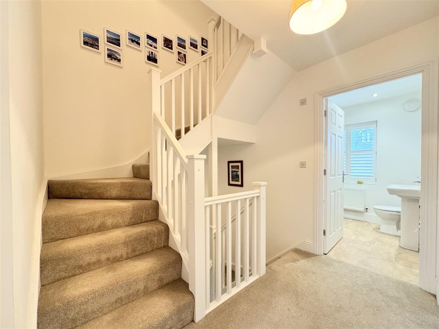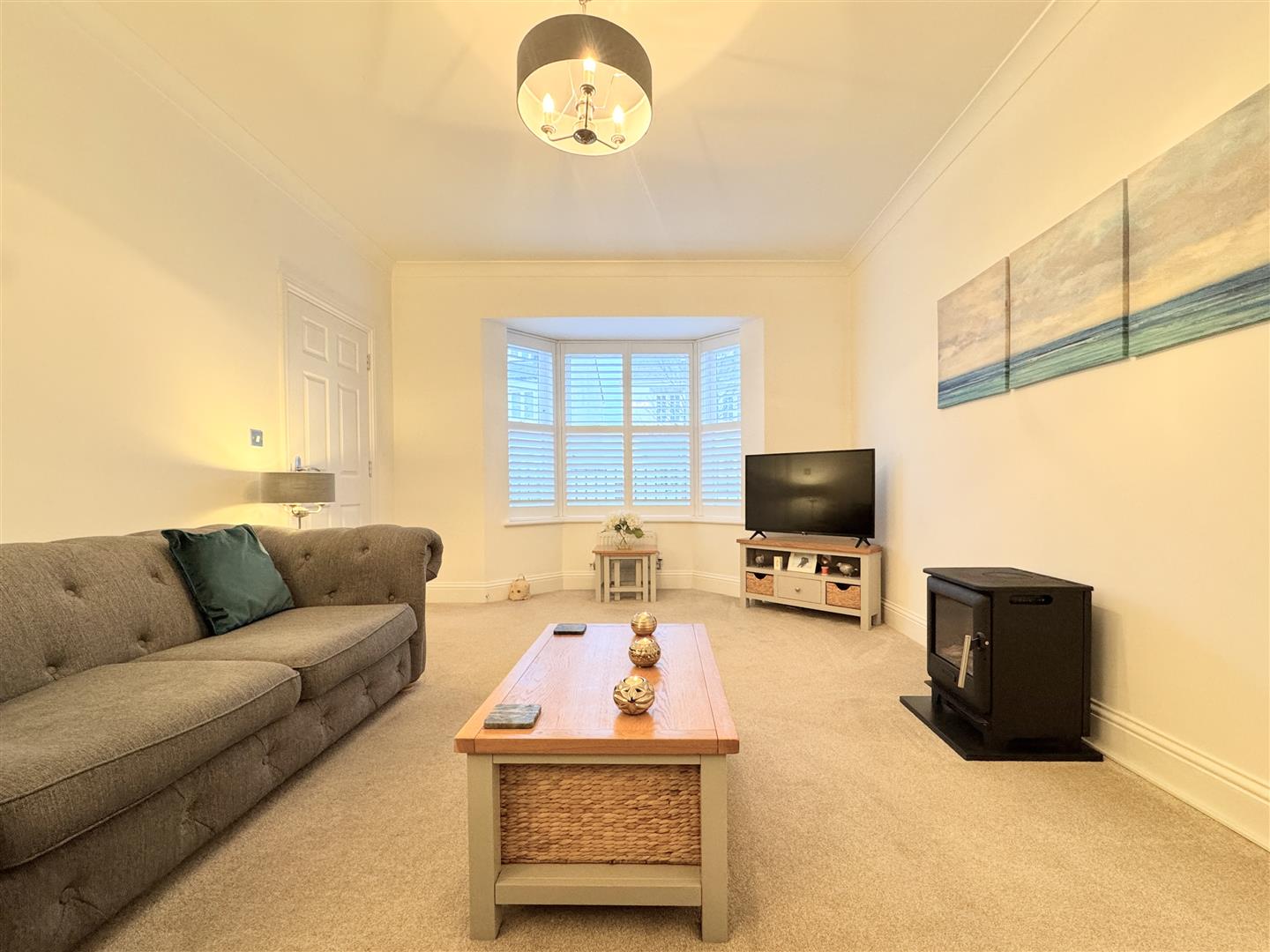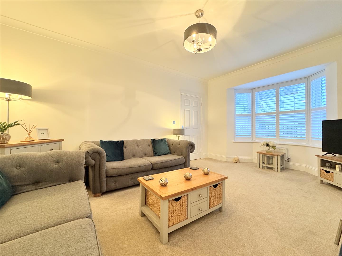 A smart and welcoming entrance hallway, complete with stairs to the first floor and a useful cloakroom, sets the tone. To the left, the bay-fronted lounge is a fantastic social space with real wow factor, perfect for large families to gather and relax, whether entertaining or enjoying a film night.