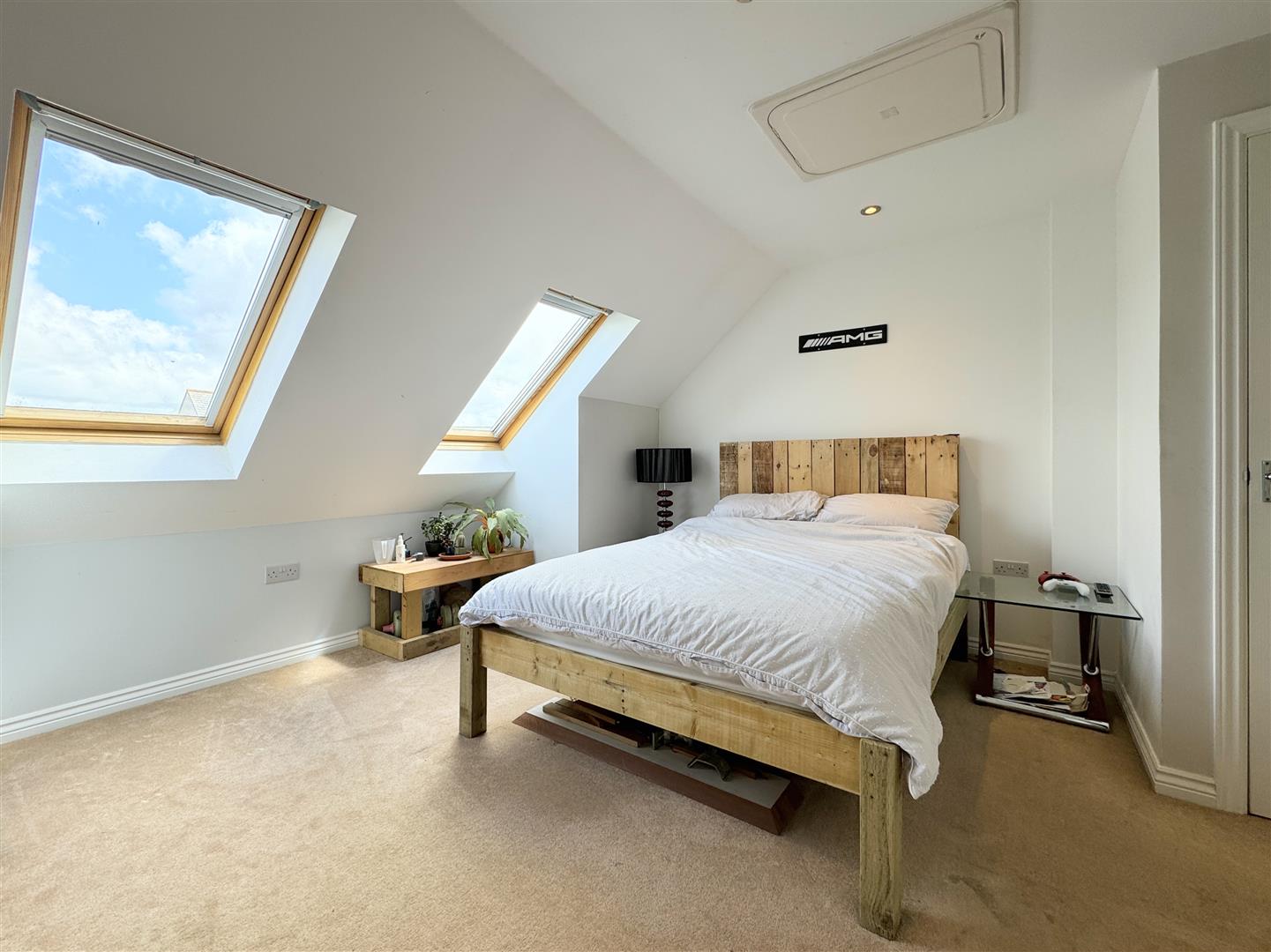 Off from the second floor landing is a large main bedroom with two velux windows ensuring plenty of natural light. Within this bedroom there's two built in cupboards and a spacious en suite shower room.