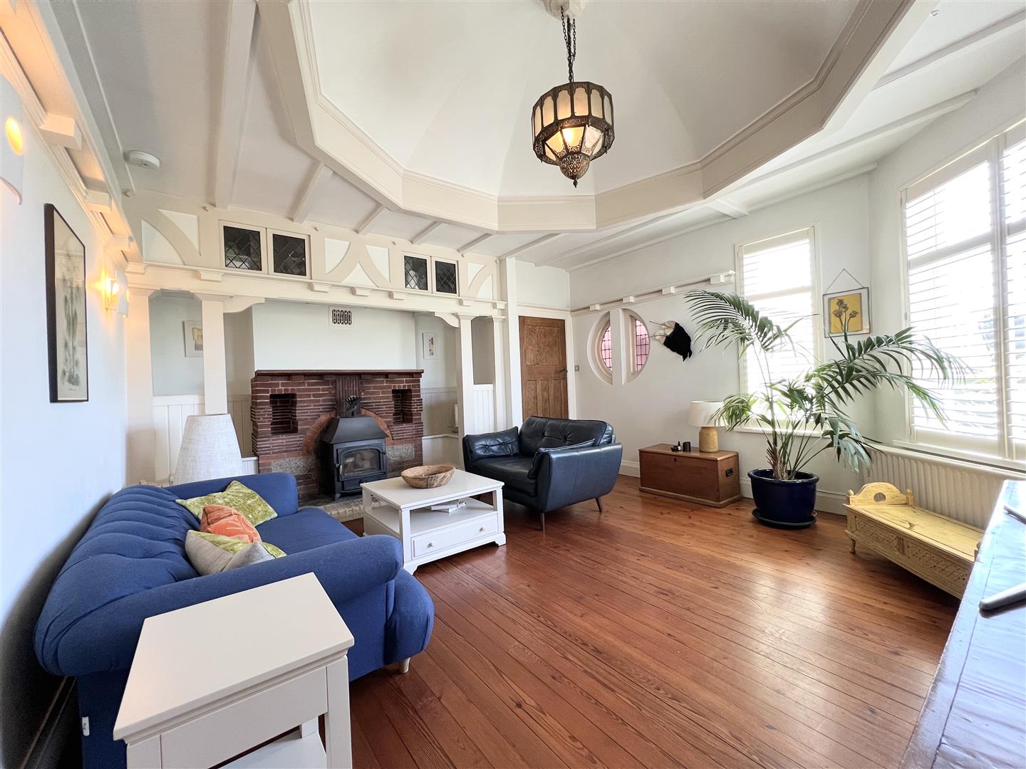 A grand entrance hallway with gorgeous original floorboards guides you into this property where the size of this property immediately becomes evident! At the front, with a gorgeous bay window the first room to greet you has been used as a bedroom and a second living room in the past. The main living room is sure to make you smile with a high domed ceiling, leaded windows and a log burner this family room has a real feel of luxury, perfect for the whole family to snuggle up and watch a film.